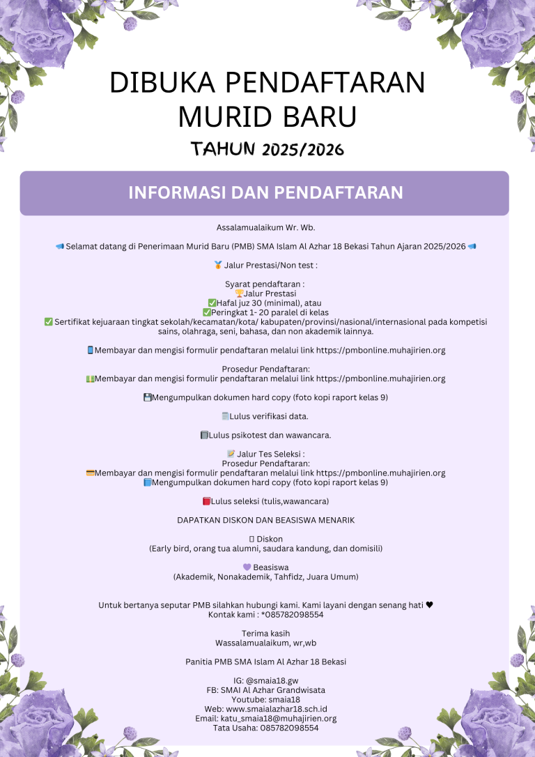 𝙞𝙨𝙢𝙞𝙞𝙡𝙖𝙝𝙞𝙧𝙧𝙖𝙝𝙢𝙖𝙖𝙣𝙞𝙧𝙧𝙖𝙝𝙞𝙞𝙢, 𝘼𝙨𝙨𝙖𝙡𝙖𝙢𝙪𝙖𝙡𝙖𝙞𝙠𝙪𝙢 𝙒𝙖𝙧𝙖𝙝𝙢𝙖𝙩𝙪𝙡𝙡𝙖𝙝𝙞 𝙒𝙖𝙗𝙖𝙧𝙖𝙠𝙖𝙩𝙪𝙝 Alhamdulillah, congratulations Harsa Amerta!🔥 ———————————– 𝗢𝗣𝗘𝗡 𝗥𝗘𝗚𝗜𝗦𝗧𝗥𝗔𝗧𝗜𝗢𝗡 𝟮𝟬𝟮𝟱/𝟮𝟬𝟮𝟲 𝗔𝗖𝗔𝗗𝗘𝗠𝗜𝗖 𝗬𝗘𝗔𝗥 𝗦𝗠𝗔 𝗜𝗦𝗟𝗔𝗠 𝗔𝗟 𝗔𝗭𝗛𝗔𝗥 𝟭𝟴 𝗚𝗥𝗔𝗡𝗗 𝗪𝗜𝗦𝗔𝗧𝗔 𝗣𝗠𝗕 𝗜𝗡𝗙𝗢 𝗠𝗿𝘀. 𝗦𝘂𝗸𝗺𝗮: