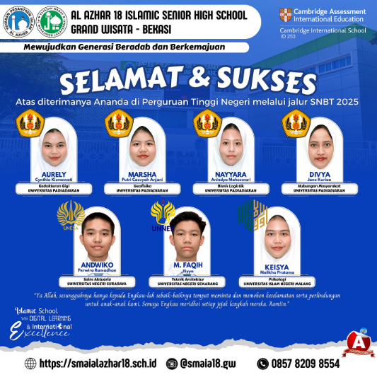 Alhamdulillah, we proudly announce our Harsa Amerta who have successfully passed and been accepted through the SNBT pathway in 2025 : 1. Aurely Chyntia Kismawati 2. Marsha Putri Caesyah Anjani 3. Nayyara Anindya Maheswari 4. Divya Jane Kurian 5. Andwiko Perwira Ramadhan 6. Muhammad Faqih Iliyya 7. Keisya Malikha Pratama This amazing accomplishment is just […]